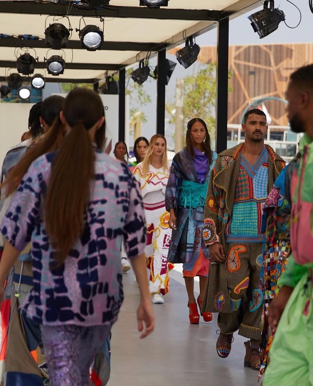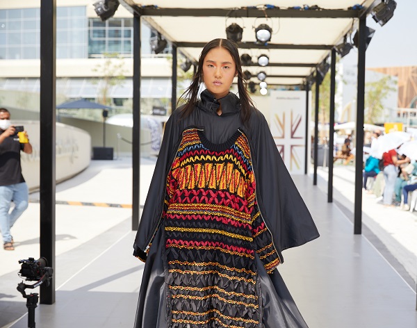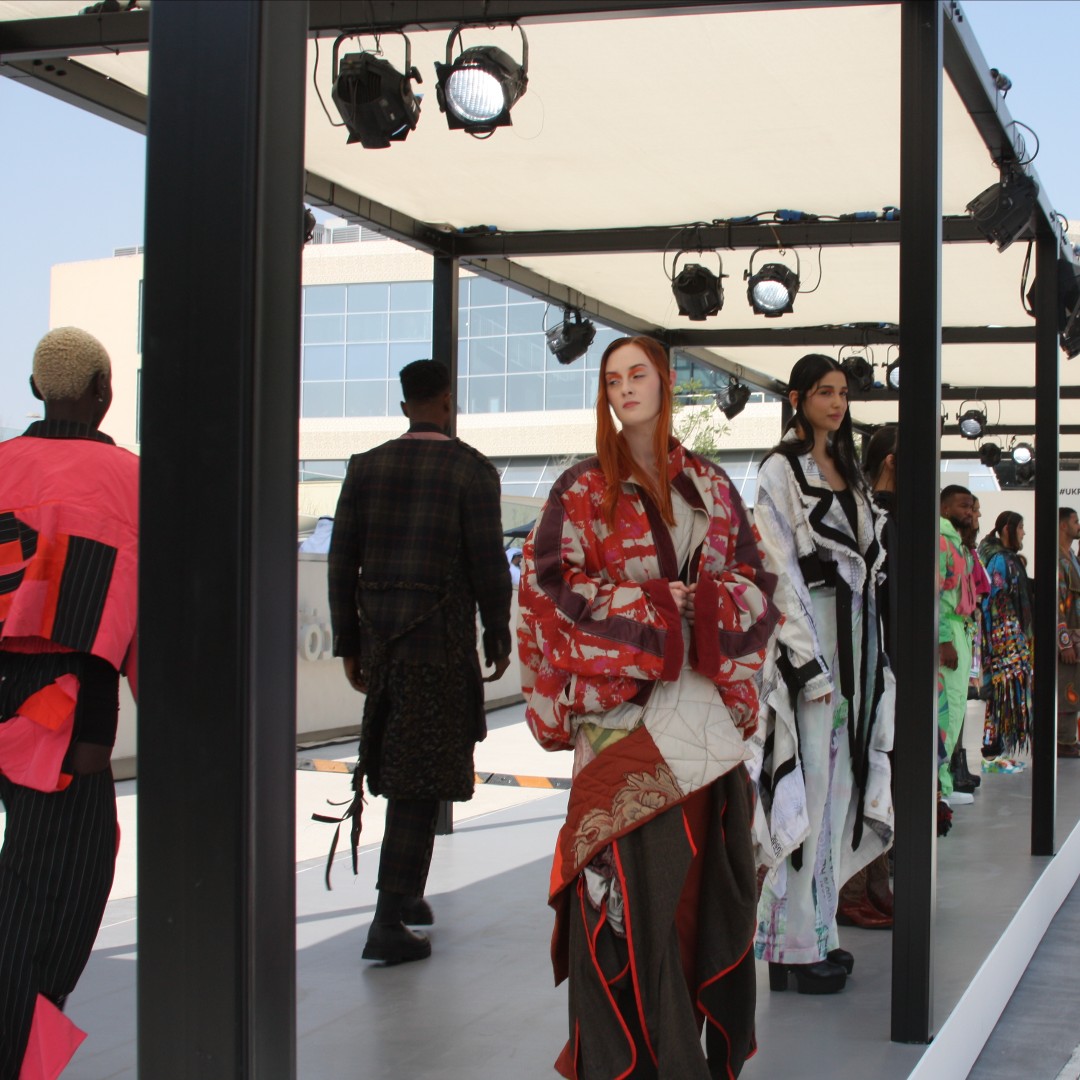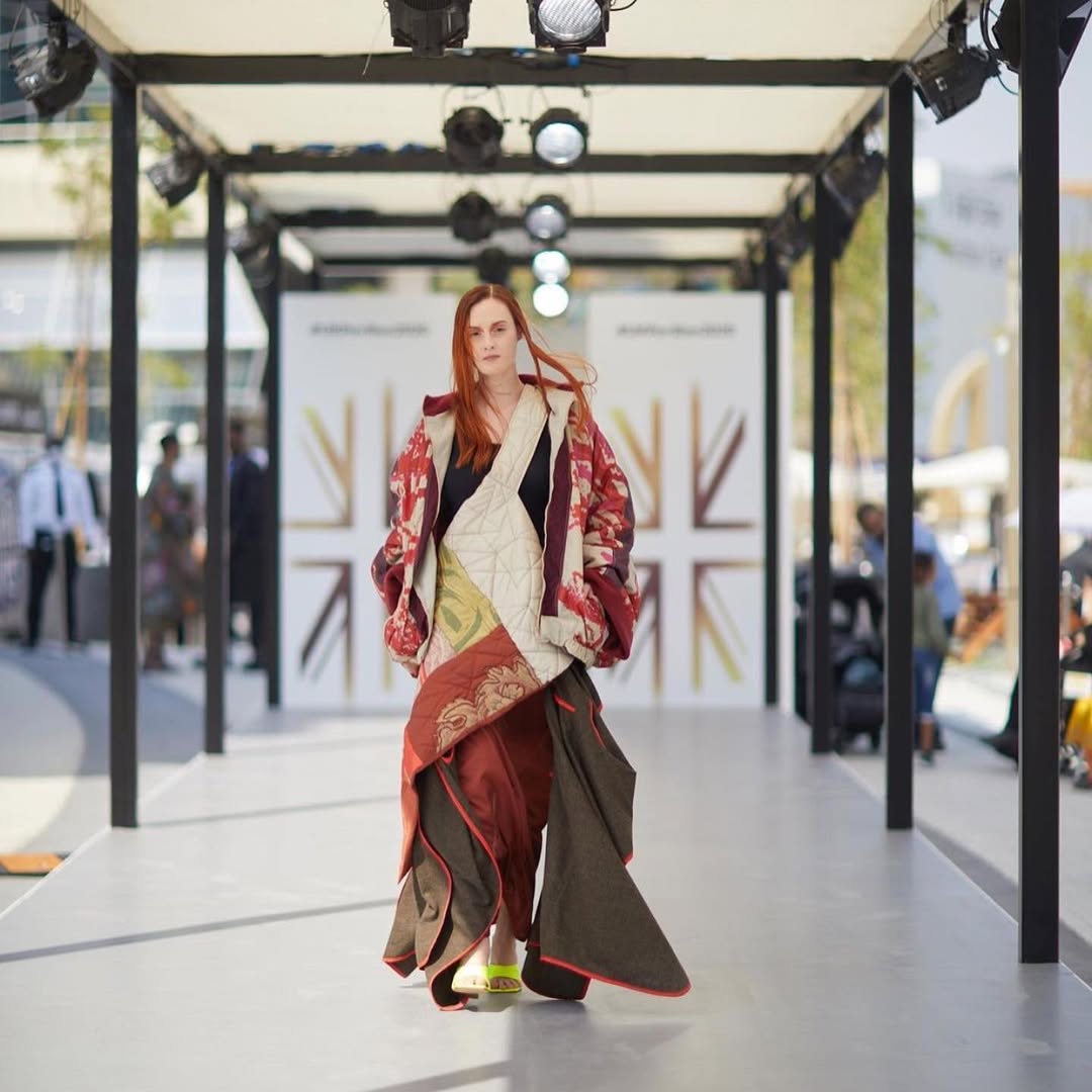 Set against the striking architecture of the UK Pavilion, the runway show highlighted the creativity of the next generation of British designers, with a focus on material innovation, sustainability, and artistic expression.